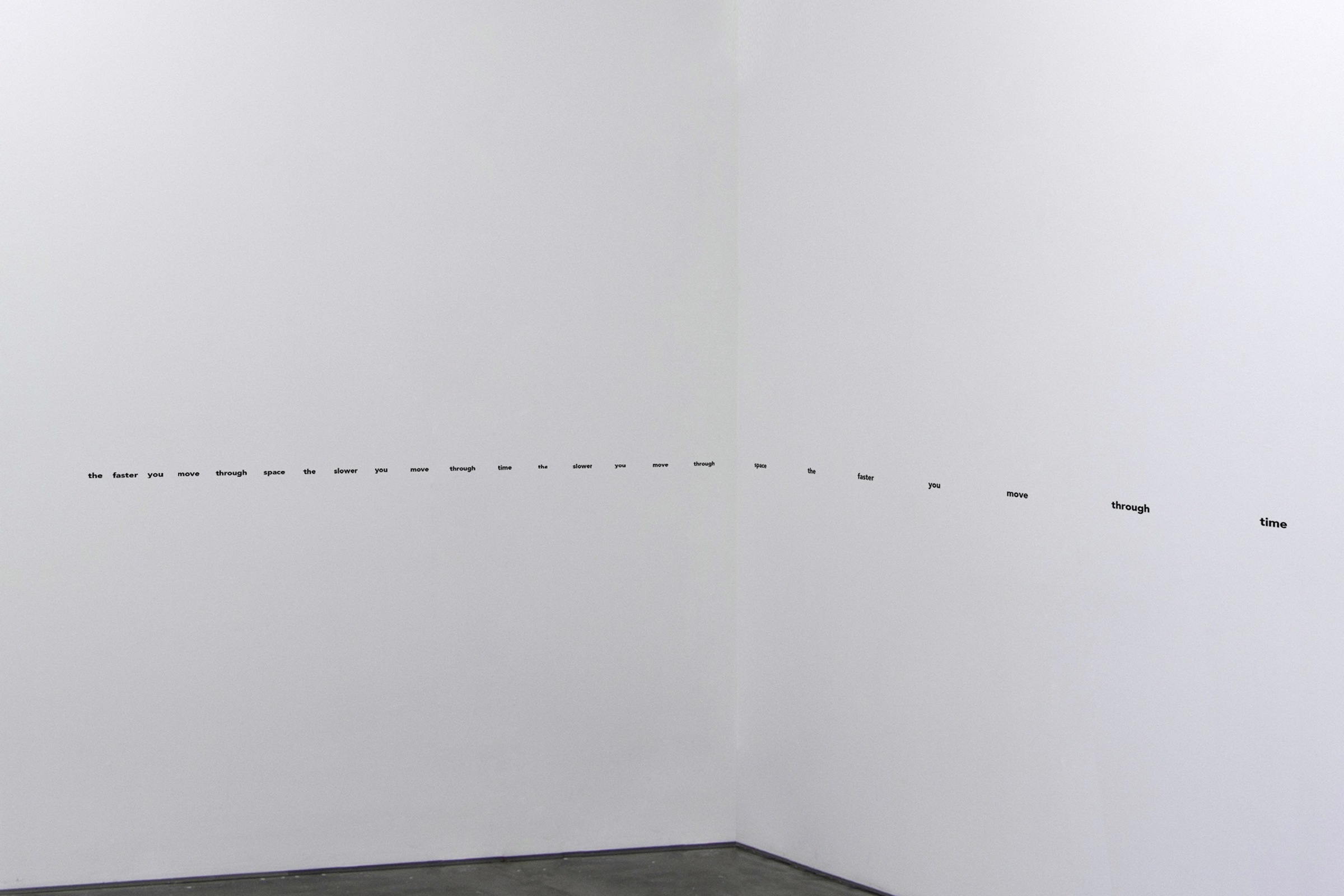 Text spaced out over a changing distance; to complete the sentence is to physically move through space and time.